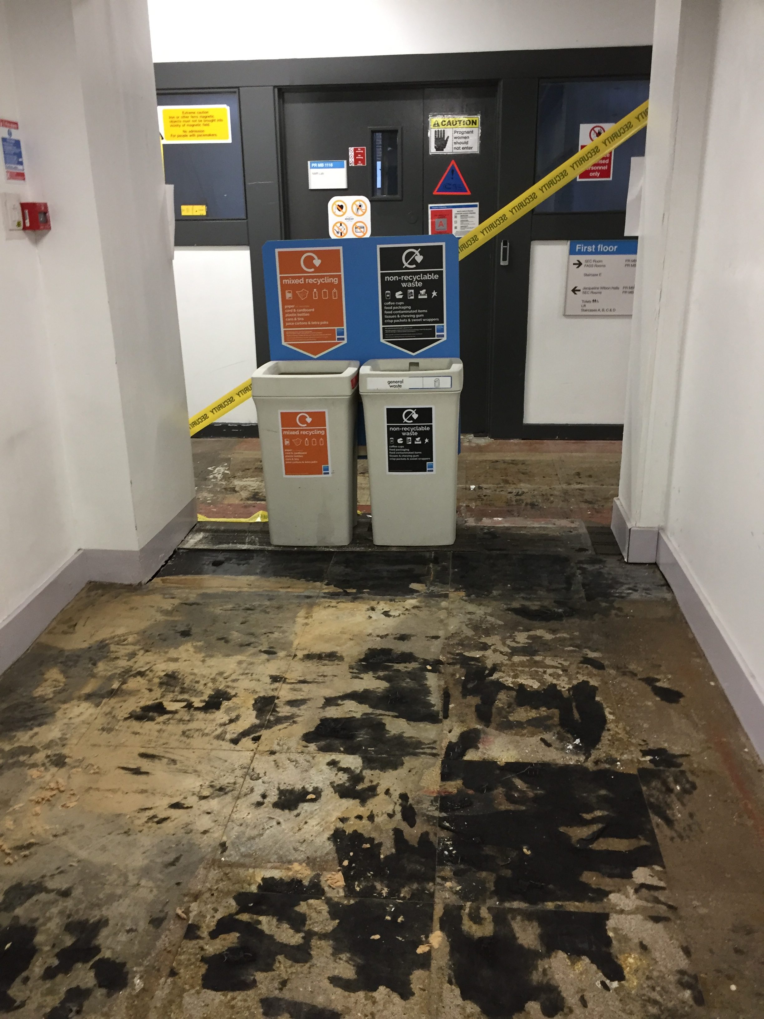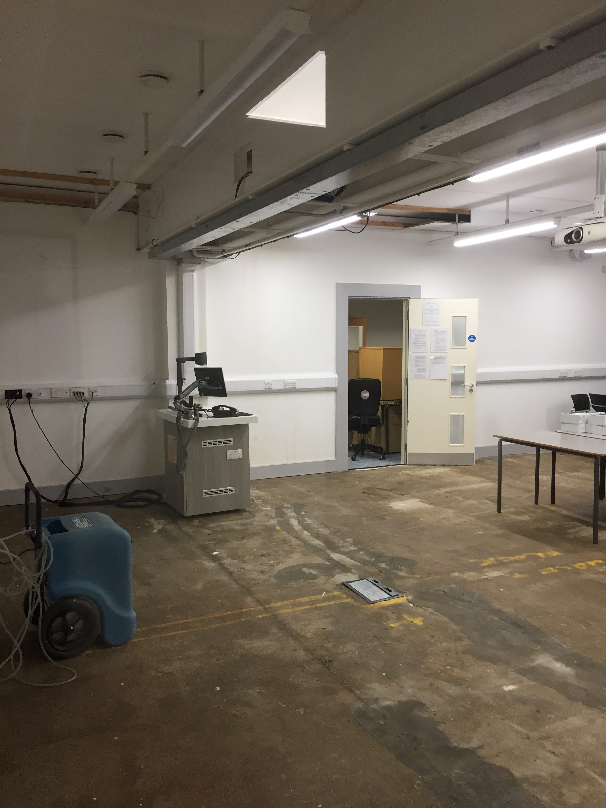 The area is now dried up and ready for new carpets and new ceiling tiles while some of the equipment is still going through electrical tests.